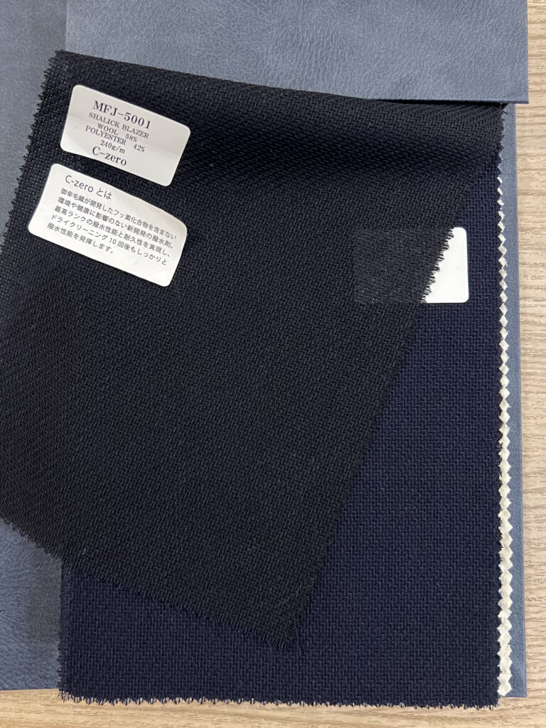 ウール×モヘア×ポリエステルのトロピカル(平織り)というシャリックならではの原料ブレンドと特殊な糸加工により清涼感と通気性、軽量感のある生地です。