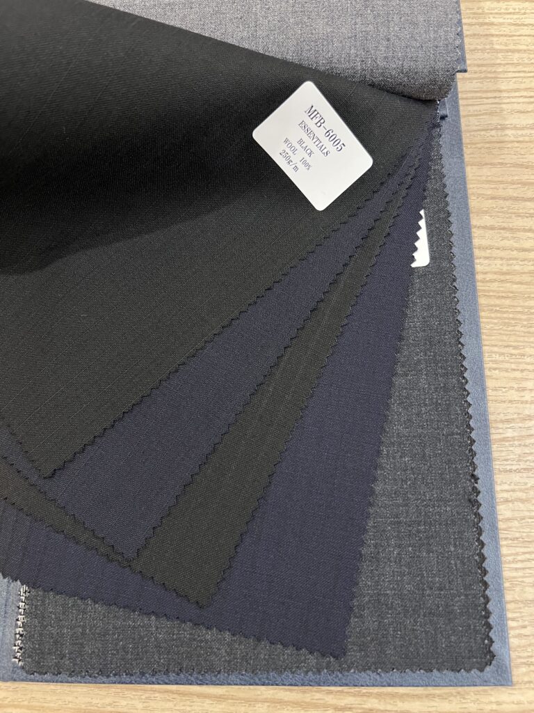 内容は、盛夏用の服地『シャリック』、ベーシックラインの『エッセンシャルズ』、高級ラインの『スーパー130sウール』の3部構成になっております。