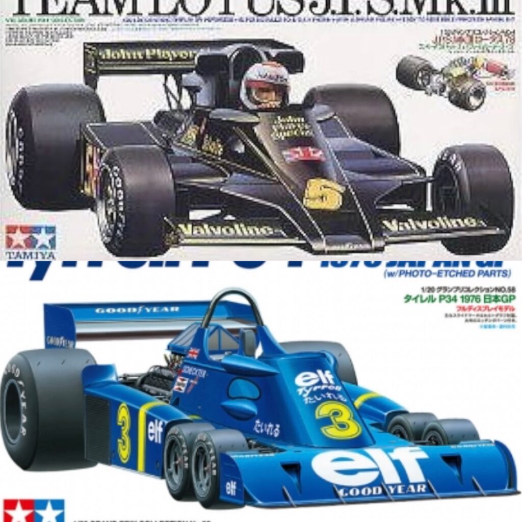 下:タイヤが6個のレーシングカーなんて初めて見ました。レースの勝敗に関係なく見た目のインパクトで1番人気のブルーの『タイレル・P34