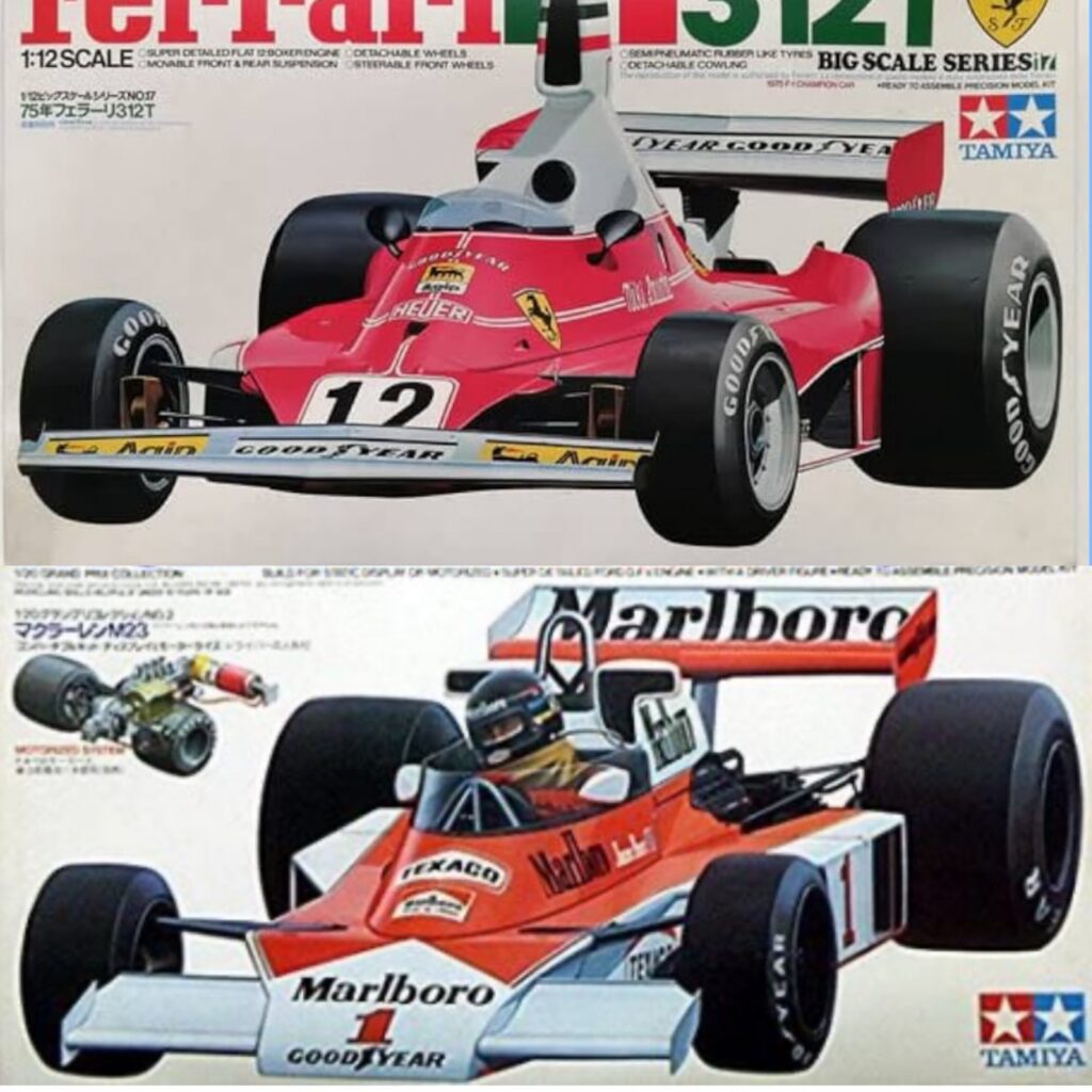 上:ニキ・ラウダの『フェラーリ312T 』 下:ジェームズ・ハントの『マルボロ・マクラーレン