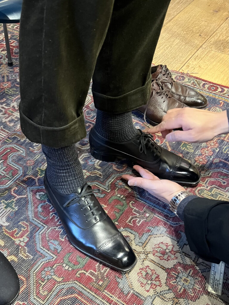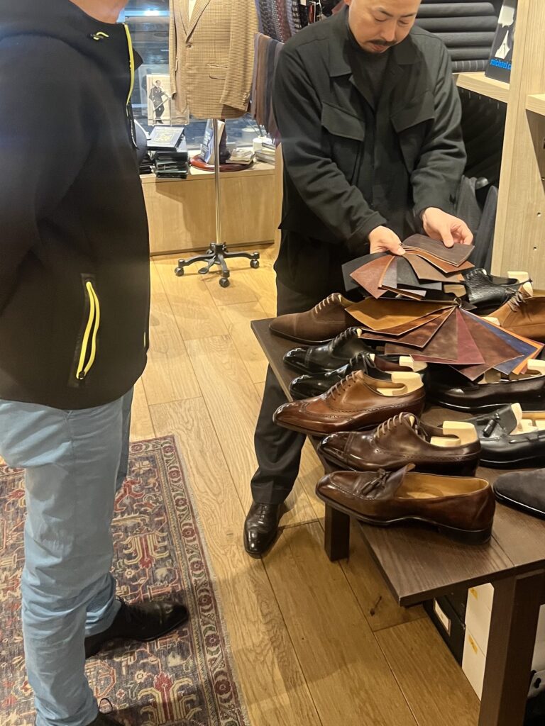 当店でスーツをお仕立ていただいているお客様も多く、今回も靴とスーツを合わせたトータルコーディネートのアドバイスもさせていただきました。